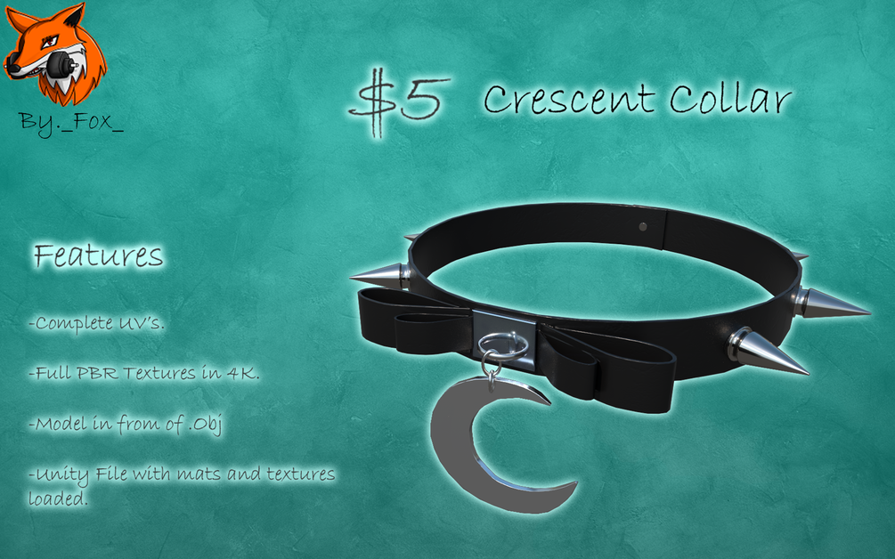 This Crescent Collar features- -Complete Uv's -Full PBR Textures in 4k -Model in form of .OBJ -Unity File with mats and textures loaded.